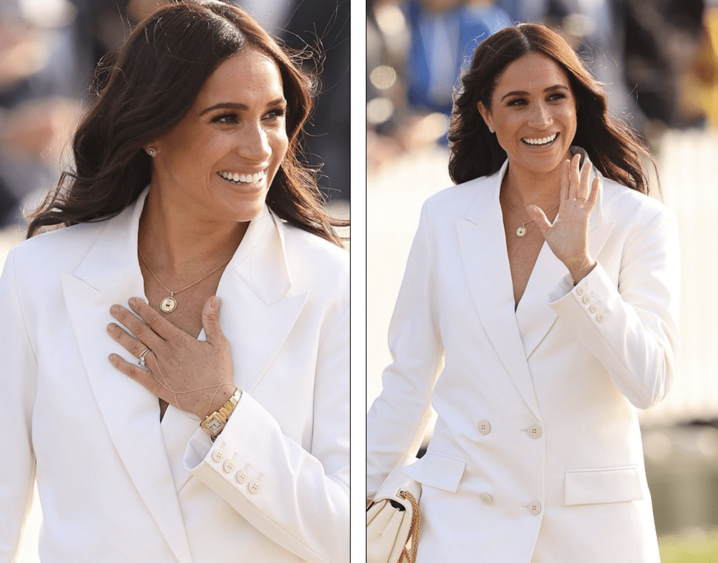 梅根退出王室後首次亮相歐洲!穿白西裝高調復出,穿成五五分身材